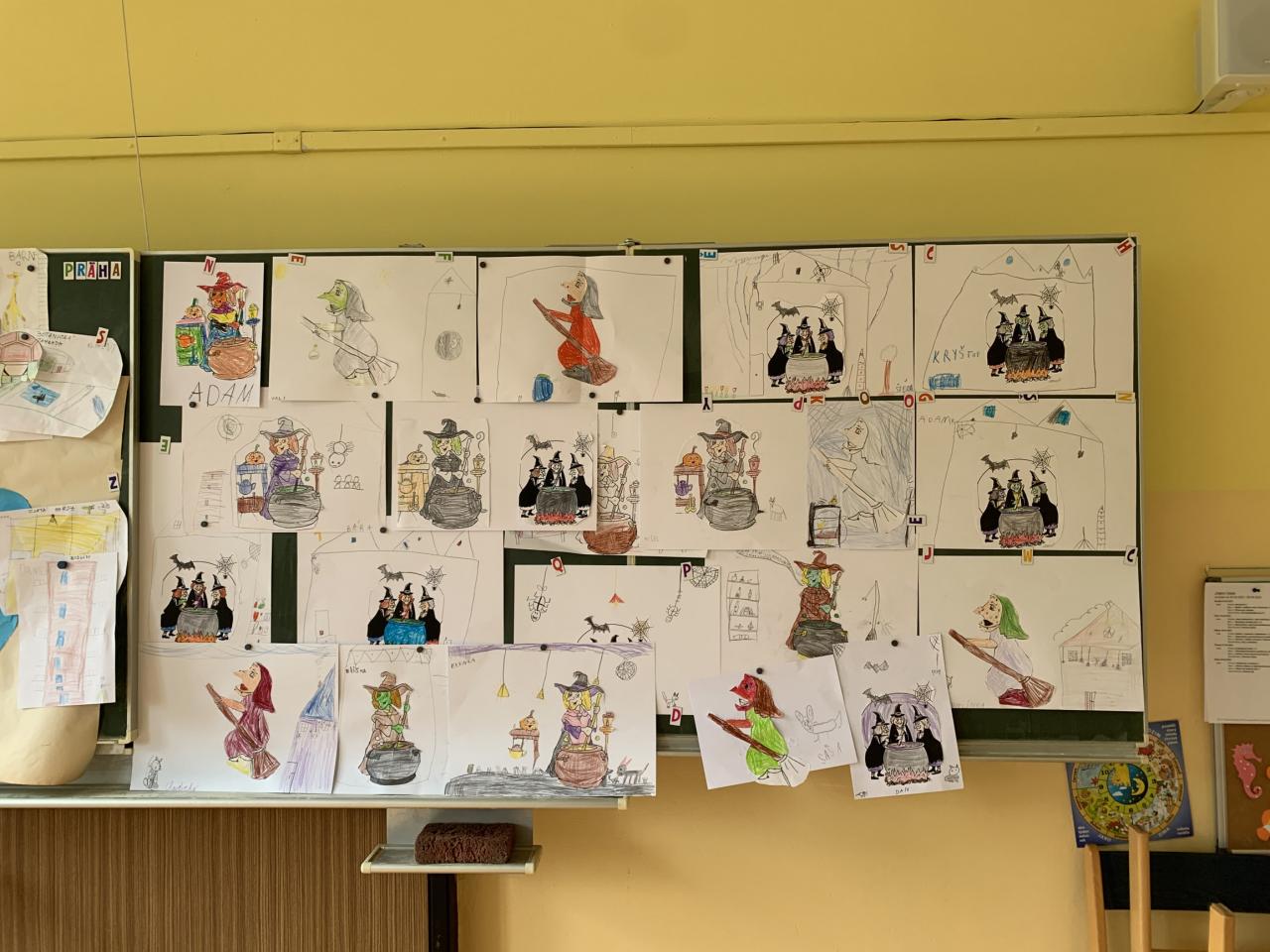 Nějaké ty čarodějnice jsme si vyrobili i v družině - pořádné babice s klobouky, pavouky, krysami a kouty plné pavučin. Brrrr (BOU)
