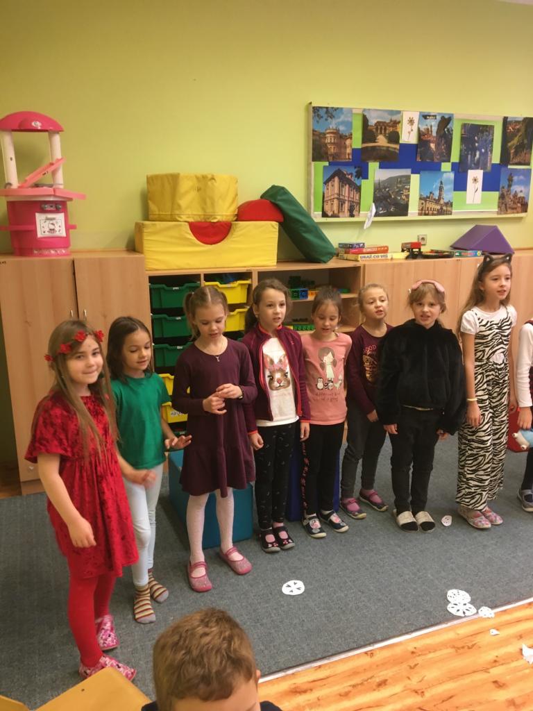 Připravila jim tím moc krásné odpoledne. Poté jsme si všichni zazpívali koledy a dostali od Lvíčat vlastnoručně vyrobené sněhové vločky. (REM, BOU)