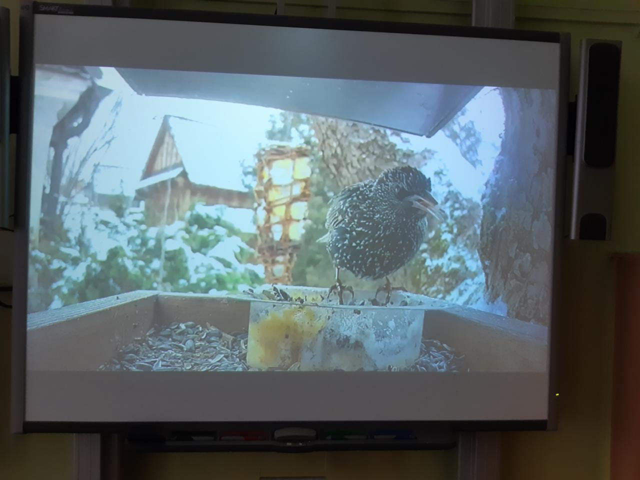 Při procházce a přes webkameru jsme pozorovali ptáčky na krmítku. Přilétali vrabci, sýkorky, kos, hýl, zvonek zelený, drozd a pěnkava.