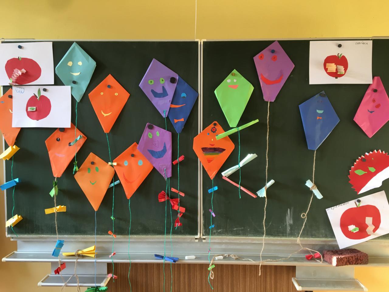 Abychom si uvědomili, že je již podzim, vyrobili jsme veselé papírové draky, ježečky nesoucí zásoby na zimu a krásná jablíčka obydlená harmonikovými červíky.
