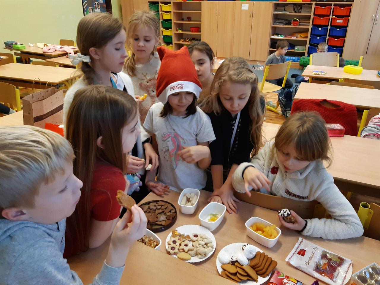 Tančili, zpívali koledy a ochutnávali cukroví. Ježíšek k nám, do školní družiny, přinesl dárky. Hned jsme je rozbalili a hry si zahráli.