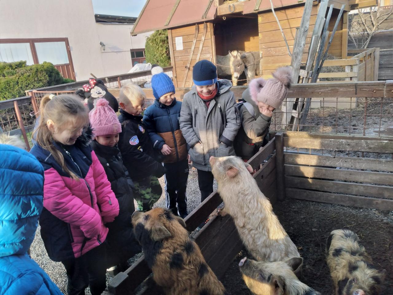 Ve venkovním výběhu jsme si prohlédli zvířátka, která jsme si mohli i pohladit. Nejvíce se dětem líbila ochutnávka čokolády. (TRO, PSL)