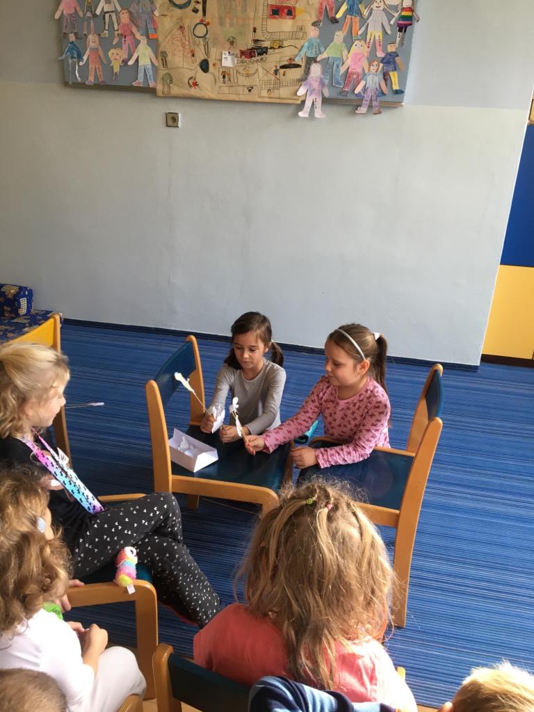 A pak si každá ze skupin své představení připravila a ukázala diváctvu . Všechny pohádky se nám líbily, at už to byla Locika, Pejsek a kočička, Perníková chaloupka nebo jiné.