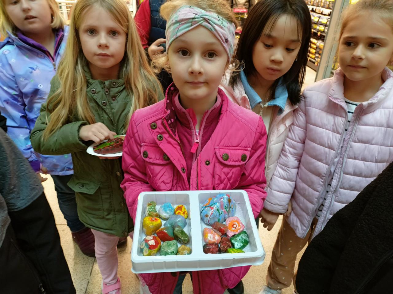 Na památku si tam Lvíčata koupila kamínky, které malovali jiní účastníci – jeden, s kočičkou, do družiny a druhý, s morčátkem, do třídy.