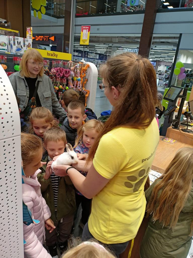 Když už bylo hotovo, Lvíčata v doprovodu vychovatelky a třídní učitelky odnesla kamínky do prodejny Super Zoo, kde na ně čekalo milé překvapení od paních prodavaček – seznámení se zvířaty a plná taška dárků.