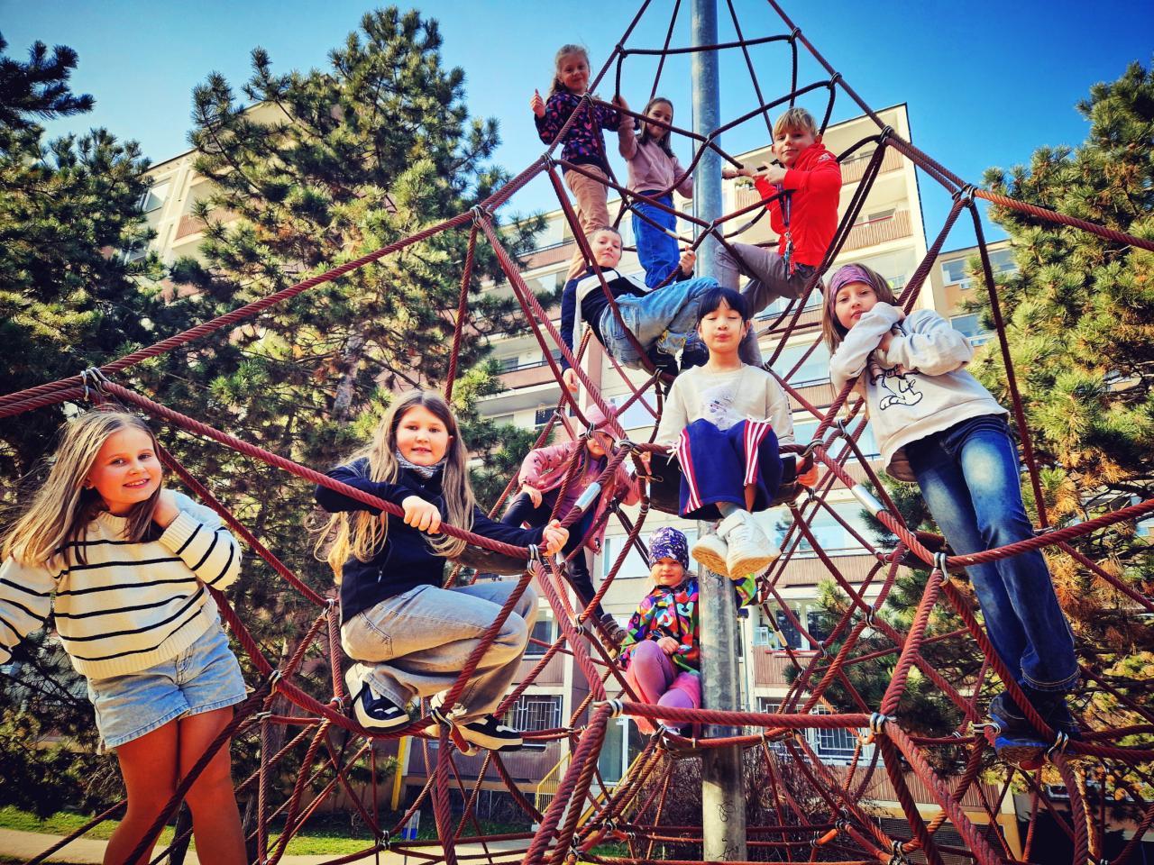Přeje nám počasí, tak jsme rádi venku, lezeme po pyramidě nebo soutěžíme:-)