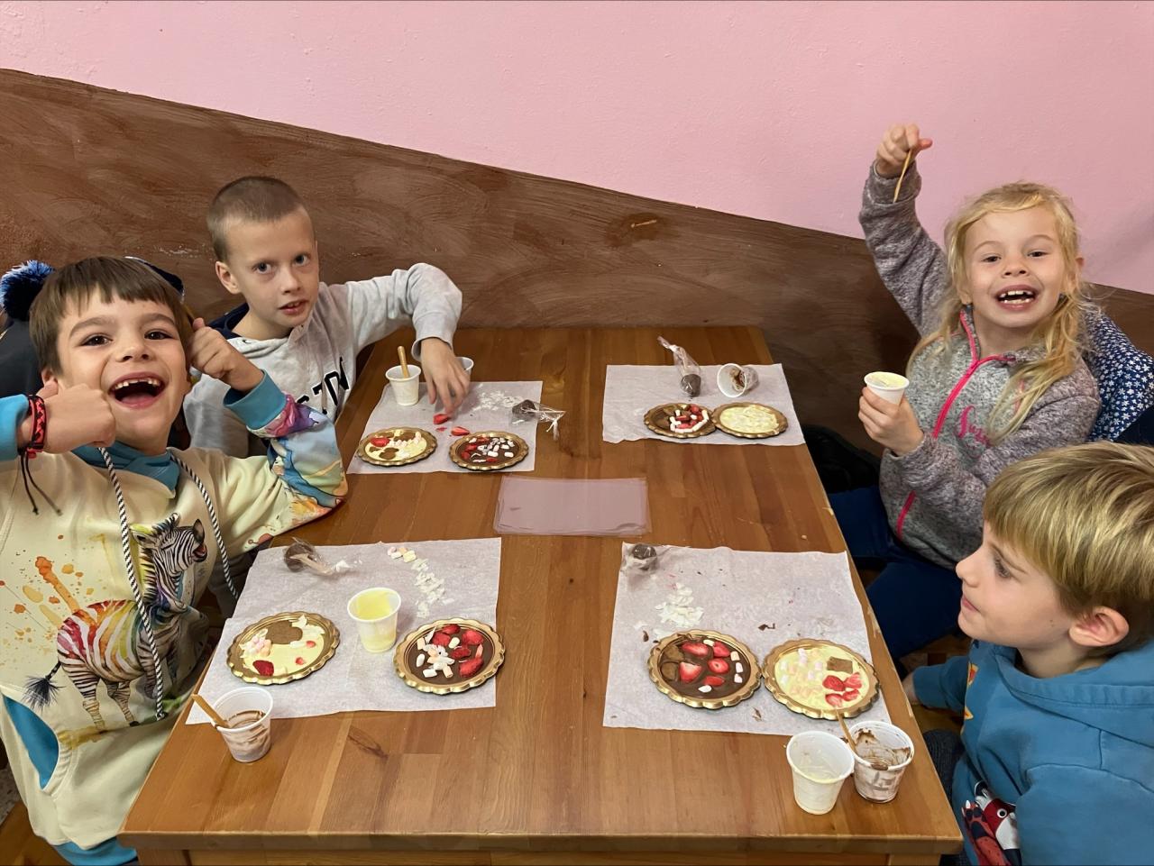 Čokoládu si děti mohly dozdobit podle svojí chuti, měly na výběr kokos, žužu, perníček a sušené jahody. Zbytek času jsme strávili u zvířátek. Snad si pochutnají i rodiče. (TRO)