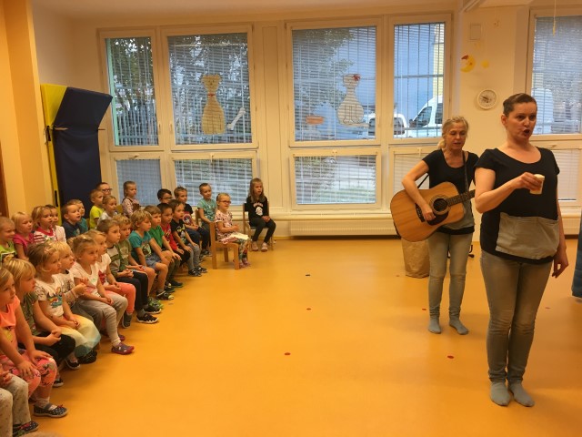V úterý 15.10. k nám přijelo Divadlo z pytlíčku s pohádkou Královna barev. Byla to pohádka napínavá, plná písniček o barvičkách. Moc se nám líbila.