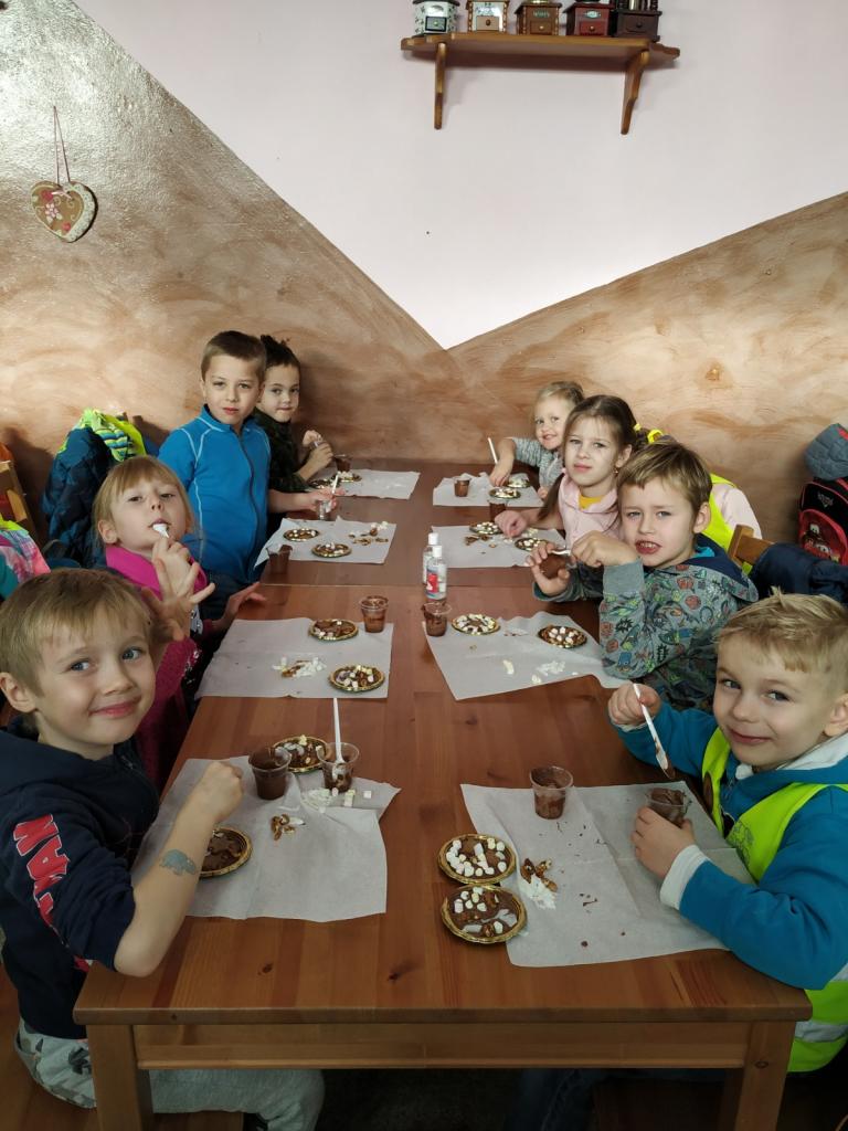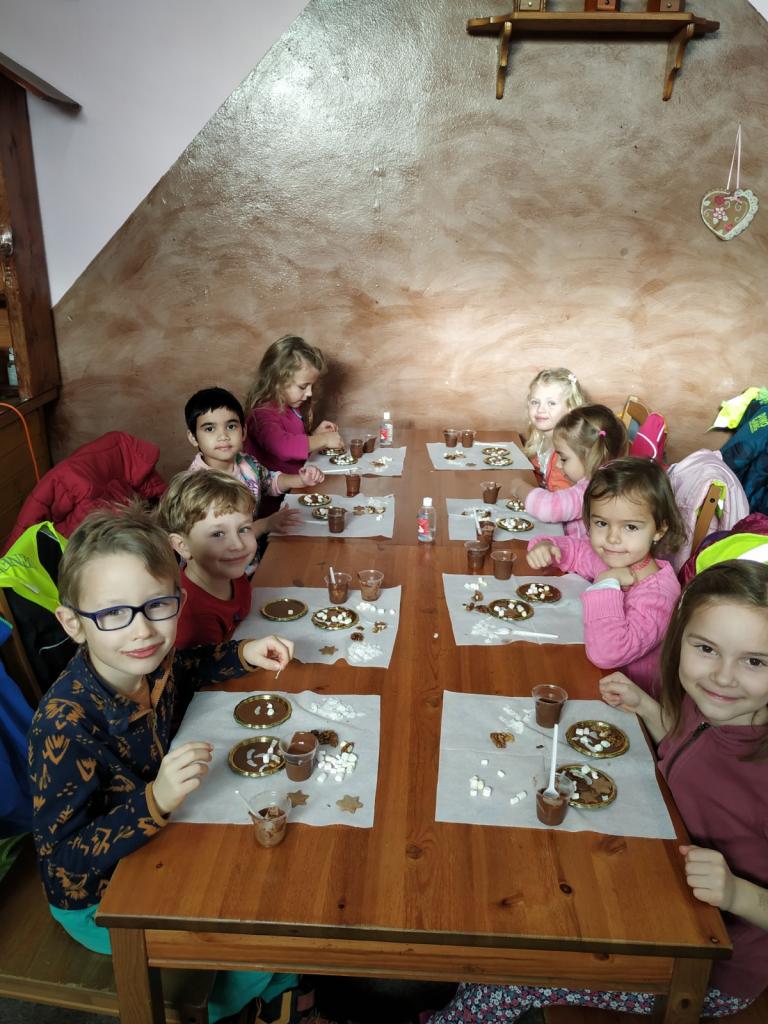 V úterý 23.11. jsme si vyjeli do Šestajovic do Rodasu, abychom si vyrobili svoji čokoládu. Na ozdobný tácek jsme si vylili teplou čokoládu, kterou jsme si podle libosti ozdobili různými dobrůtkami. Co se nám na tácek nevešlo, to jsme si mohli sníst. Ještě před odjezdem do školky jsme si prohlédli zvířátka, která tu chovají. Bylo to moooc sladké dopoledne.