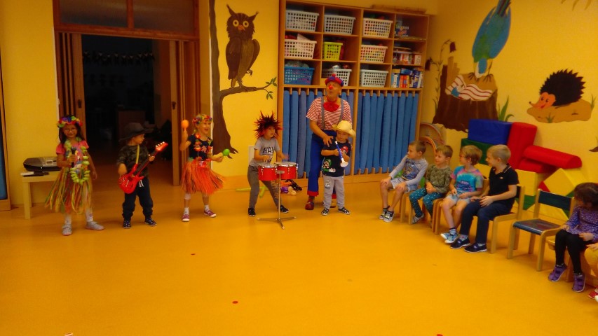 Ve čtvrtek 1.10. k nám přijel klaun Pepíno se svou kamarádkou Vlastou a psími kamarády Jimíčkem a Filípkem, aby zase po roce si s námi pěkně zadováděli. Pejsci nám ukázali takové akrobatické kousky, které my bychomurčitě nezvládli. Z některých z nás pak Pepíno udělal muzikanty a my jsme vytvořili mexickou kapelu. Ostatní si mohli při naší muzice zatancovat. Bylo to veselé dopoledne.
