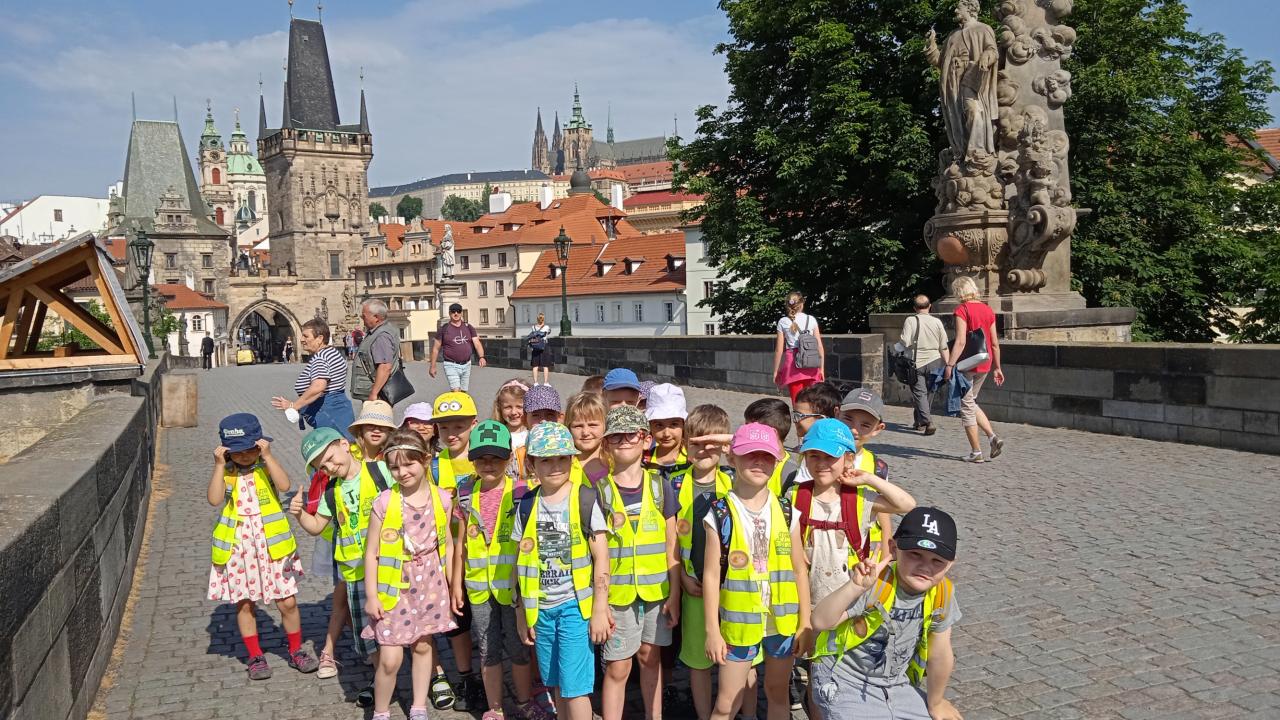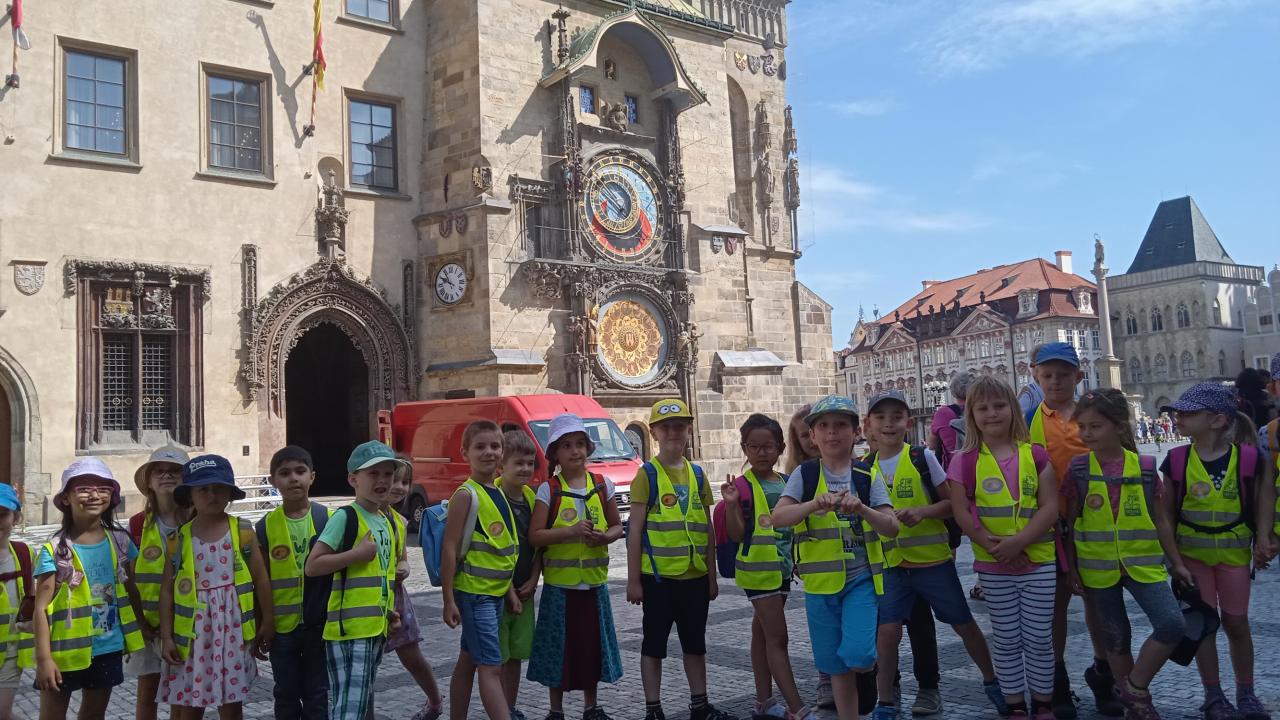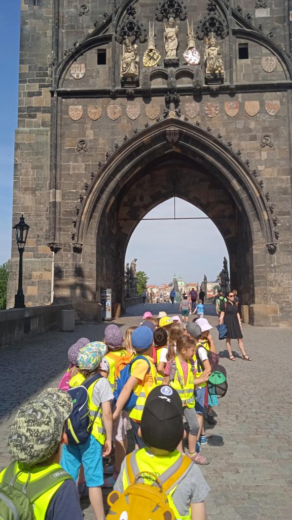 Ve čvtrtek 10.6. jsme se po svačince vydali z Malostranského náměstí po cestě, kterou chodívali králové z Hradčan na Staroměstské náměstí. Přešli jsme Vltavu po Karlově mostě a dověděli se, proč v domečku na Kampě svítí věčné světýlko. Kousek dál jsme si prohlédli Bruncvíka se lvem, našli jsme Karla IV. na Staroměstské věži. Na Satroměstském náměstí nám zamávalo 12 apoštolů z okýnek Orloje a kostra zacinkala do dalších šťastných let. Taky jsme se dověděli, že na Staroměstském náměstí bylo popraviště a i tady stojí kostel sv. Mikuláše, stejně jako na Malostranském náměstí. Když jsme prošli Týnskou uličkou, dostali jsme se do Ungeltu, kde ve středověku musel každý obchodník, který se zastavil v Praze, zaplatit clo. Pak už jsme jen navštívili kostel sv. Jakuba, abychom si prohlédli useknoutou ruku místního zloděje. Do školky jsme se vrátili tramvají akorát na oběd. Zase víme něco nového.