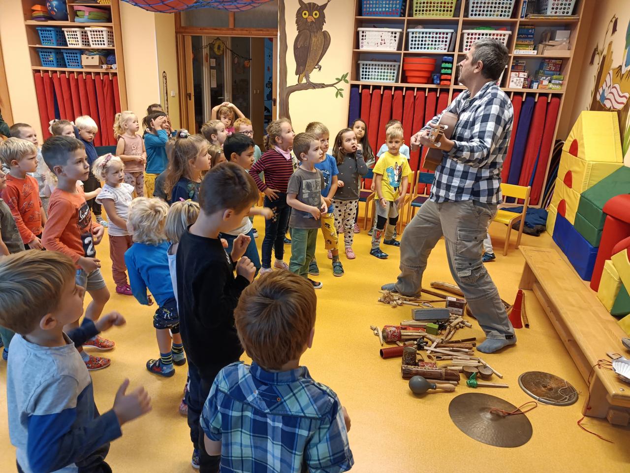 20. září za námi přijel pan Vrba a kromě pohádky o ovečce a námořníkovi s sebou přivezl spoustu různých hudebních nástrojů.
