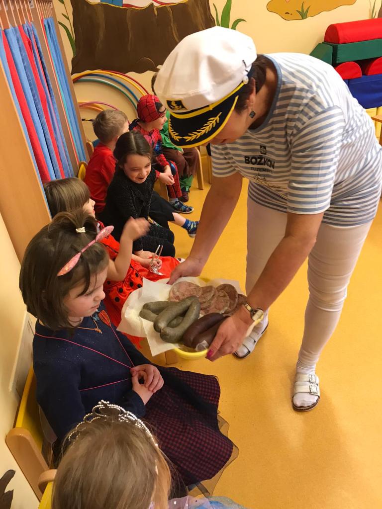 Poslední únorové úterý proběhl v rámci masopustu v naší školce karneval. Od rána do školky přicházela různá zvířátka, hudebníci, princezny a jiné pohádkové bytosti. Seznámili jsme se s masopustními tradicemi a zvyky, celý den jsme se veselili a nechyběly ani tradiční masopustní pochoutky.
