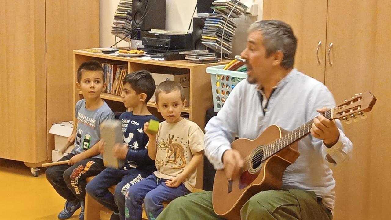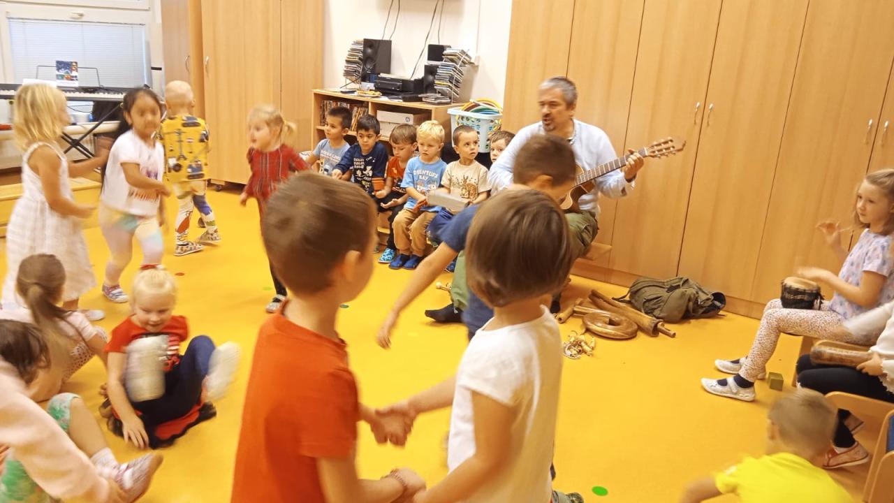 Poslední zářijové úterý byla ve školce velká legrace. Přijel za námi pan Vrba a kromě pohádky přivezl spoustu různých hudebních nástrojů, které jsme si mohli vyzkoušet. Po napínavém příběhu o ovečce, přišel na řadu zpěv, tanec a hra na hudební nástroje a to nás všechny moc bavilo!
