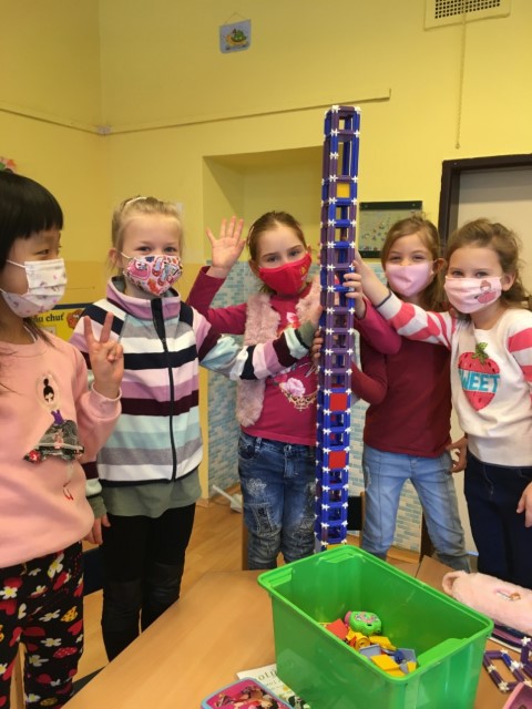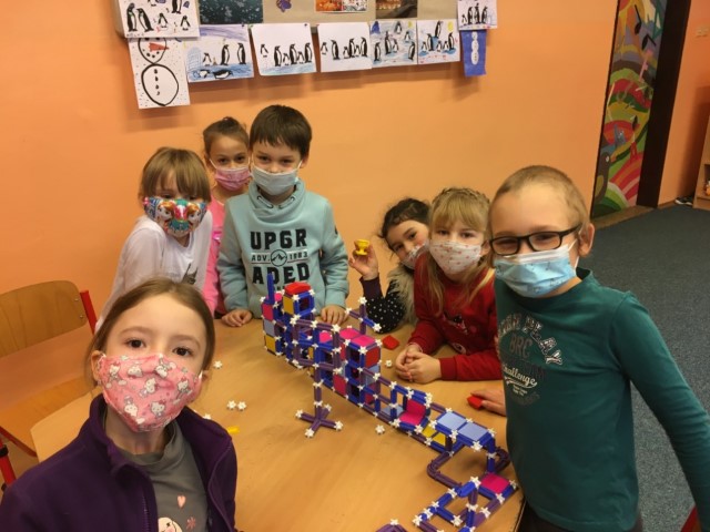 Žáci si vyzkoušeli postavit čtverec a obdélník. Ke stavění jsme využili stavebnici Seva.  Při společném stavění žáci vytvořili domy i vysoké věže. Stavění nás moc bavilo.(Tro)