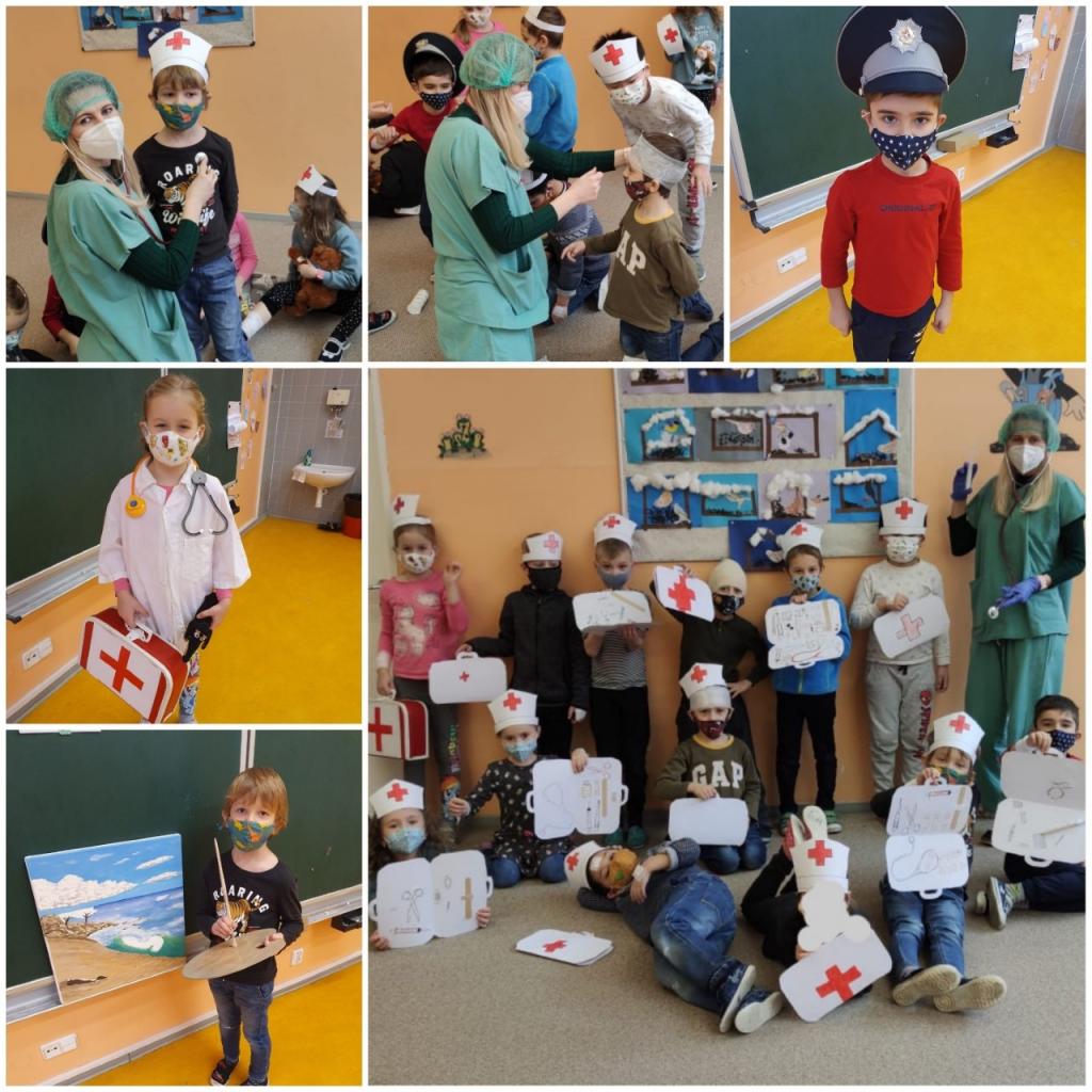Celý týden v přípravných třídách zněla tato báseň: Jen abyste věděli, budu taky dospělý. A mám jedno velké přání, vybrat správné povolání... . Děti se seznámily s řadou různých povolání. Zkusily si například povolání poštáka, kuchaře nebo malíře. Ve čtvrtek se dokonce přípravné třídy proměnily v lékařskou ordinaci a z dětí a učitelek se stali doktoři a doktorky.