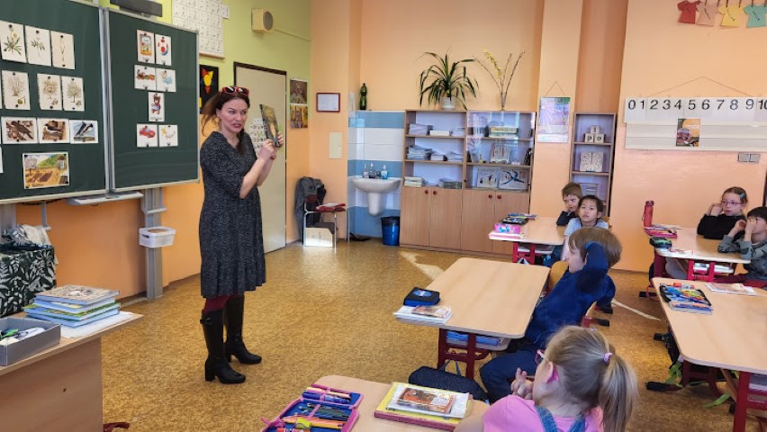 Vypravovala nám, jak knížka vzniká, kdo je nakladatel, korektor a redaktor, co je křest knížky a autogramiáda. Také jsme si poslechli několik příběhů o Elišce a jejím bráškovi Toníčkovi, které se nám moc líbily.(PAŽ)